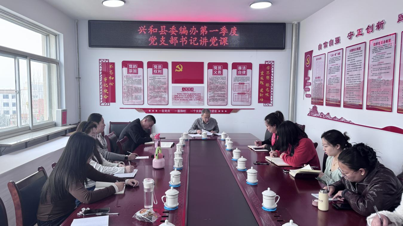 近日,兴和县委编办党支部组织开展第一季度专题党课,严格落实“第一议题”制度,集中学习习近平总书记在十四届全国人大四次会议江苏代表团审议时的重要讲话精神。