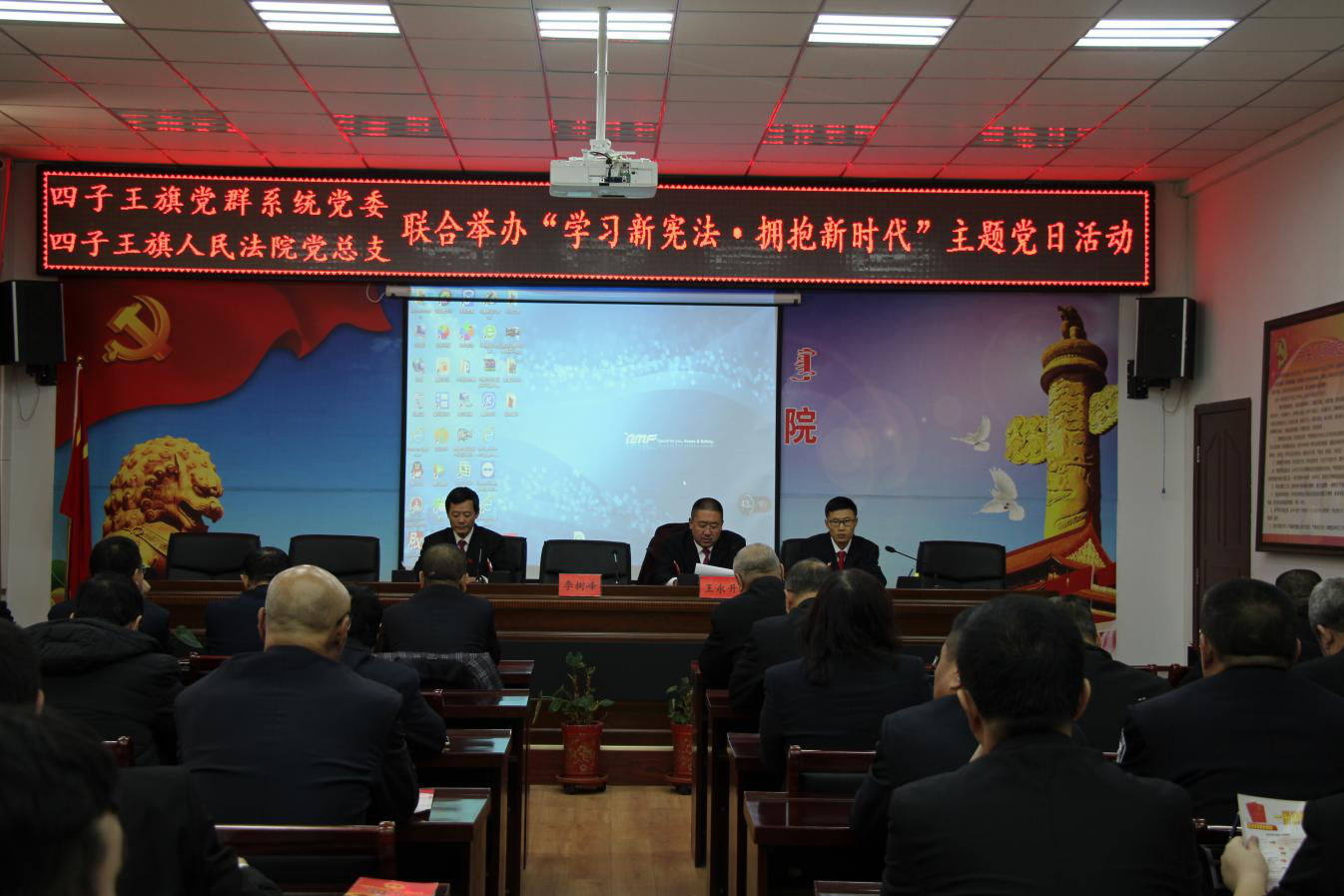 为进一步推动本单位全体党员尊崇宪法、学习宪法、遵守宪法、维护宪法、运用宪法的意识,不断增强宪政意识,我办积极参与党群系统党委与旗法院党总支联合举办的“学习新宪法·拥抱新时代”主题党日活动。