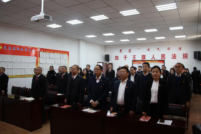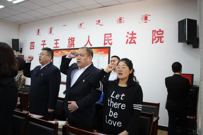 在活动中全体党员奏唱国歌,重温入党誓词,并进行了庄重神圣的宪法宣誓。在会上,认真学习了《中国共产党党支部工作条例》以及《中华人民共和国宪法修正案》修改内容,并观看了《中国宪法》宣传片。随后法院院长带领所有参会人员参观了法庭,我办党员回到单位后缴纳了当月党费。