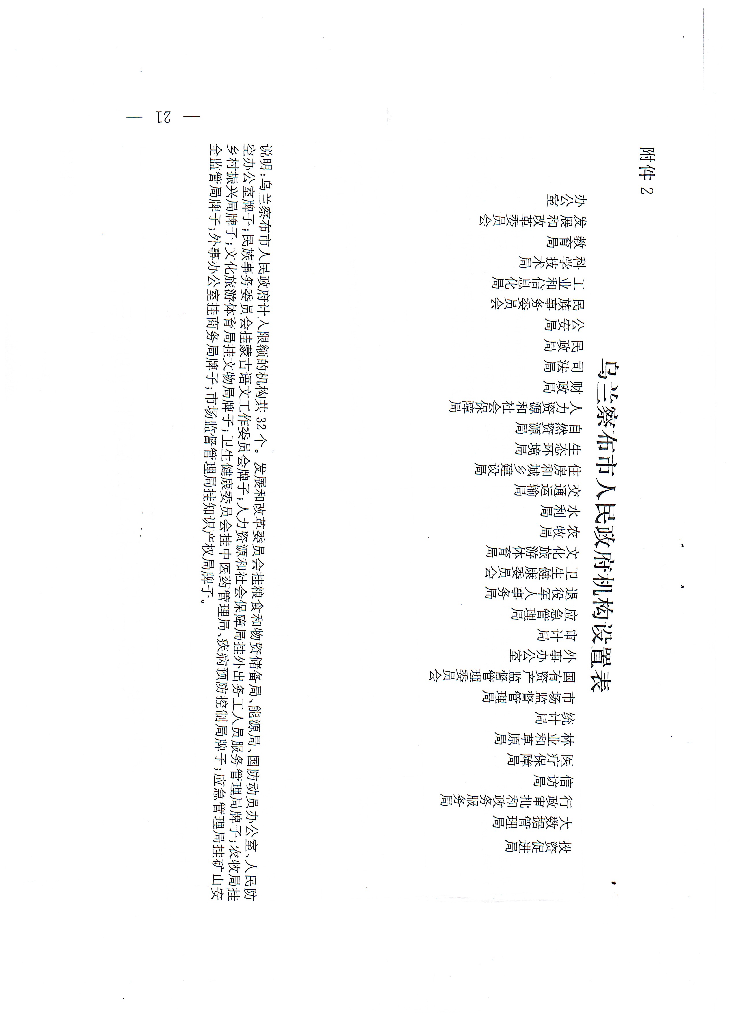 乌兰察布市人民政府机构设置表