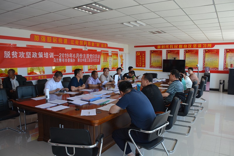 2019年6月14日,乌兰察布市委编办联合包扶的察右中旗土城子乡三层店村党支部共同举办了主题为“脱贫攻坚政策培训”的6月份主题党日活动,办机关的党员干部、帮扶责任人、我办驻三层店村的扶贫干部和三层店村委会的党员干部参加了活动。