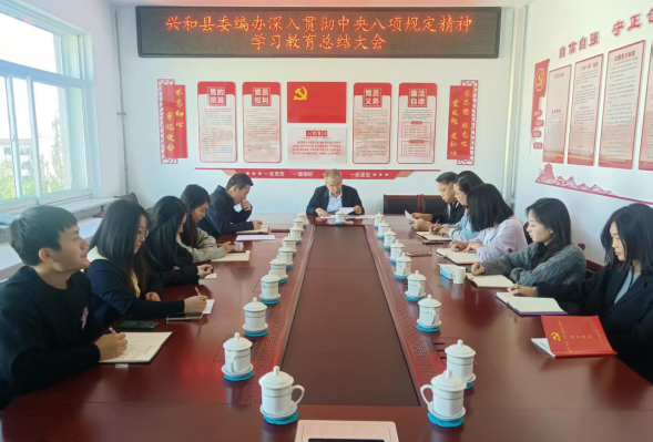 9月28日,兴和县委编办组织召开深入贯彻中央八项规定精神学习教育总结会议,全面梳理巩固学习教育成果,推进作风建设常态化长效化。县学习教育调研指导组林佳丽同志和闫雨诗到会指导,编办主任王录同志主持会议并讲话,全体干部职工参加会议。